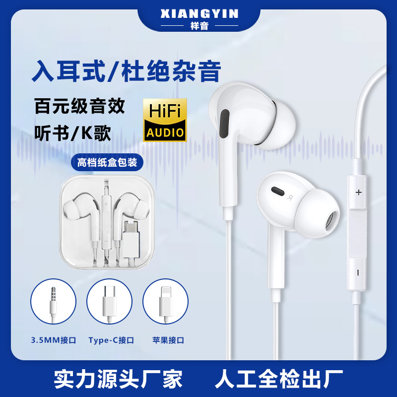 Wired in-ear headphones for Apple OPPO Huawei vivo red rice millet type-c round head hole noise reduction