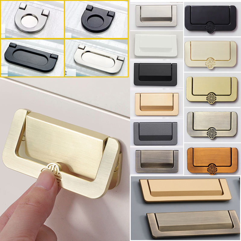 Tatami Flat Pull Handle Hidden Latch Wardrobe Door Flush Drawer Handle Cabinet Furniture