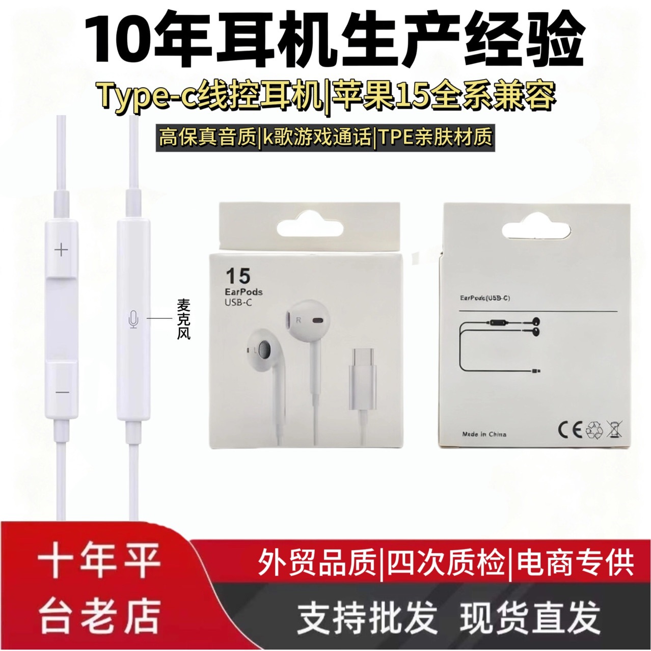In-Stock Compatible Apple 15/16 Phone Wired Earphones with Type-C Port, Digital Chip Supports Calls and Music Listening, Cross-Border