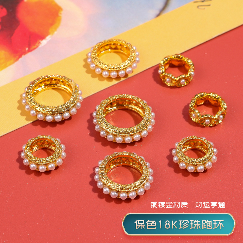 Color-preserving 18K gold Pearl running ring large hole transfer card ring diy ancient style gold spacer beads Wenwan bracelet earrings accessories