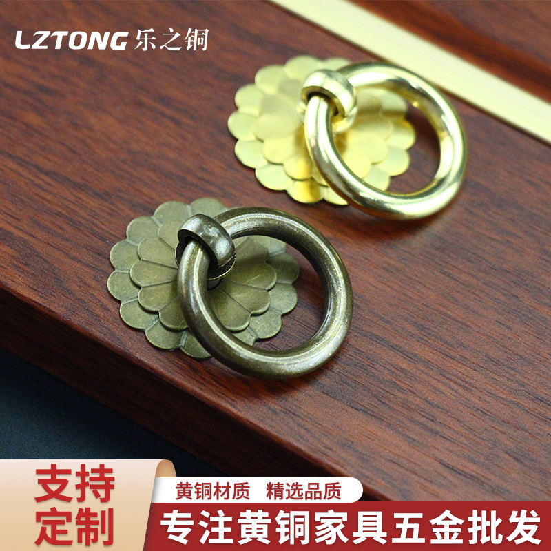 Retro Brass Handle Bookcase Drawer Copper Ring Pull Ring Wardrobe Cabinet Drawer Handle Hardware Home Copper Handle