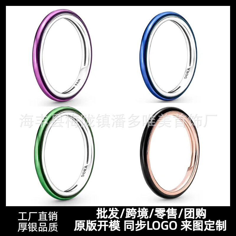 Europe and the United States cross-border jewelry Panjia Me series personality ring ring blue green purple enamel ring female plain ring