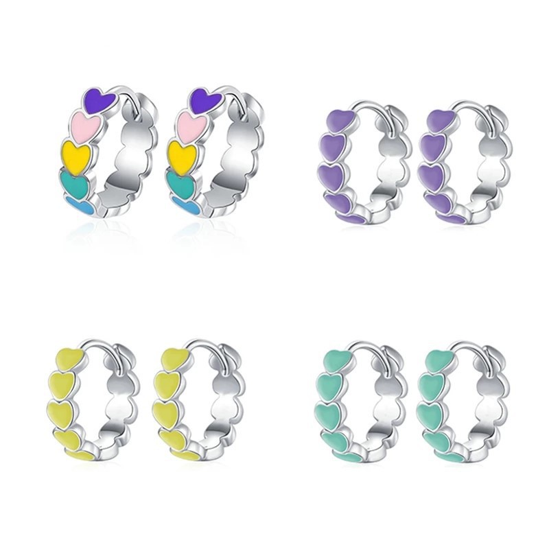 Cross-Border Special Supply of Glue Rainbow Love Earrings, Small and Sweet Heart-Shaped Earrings, Fashionable, Personalized, Fresh and Sweet