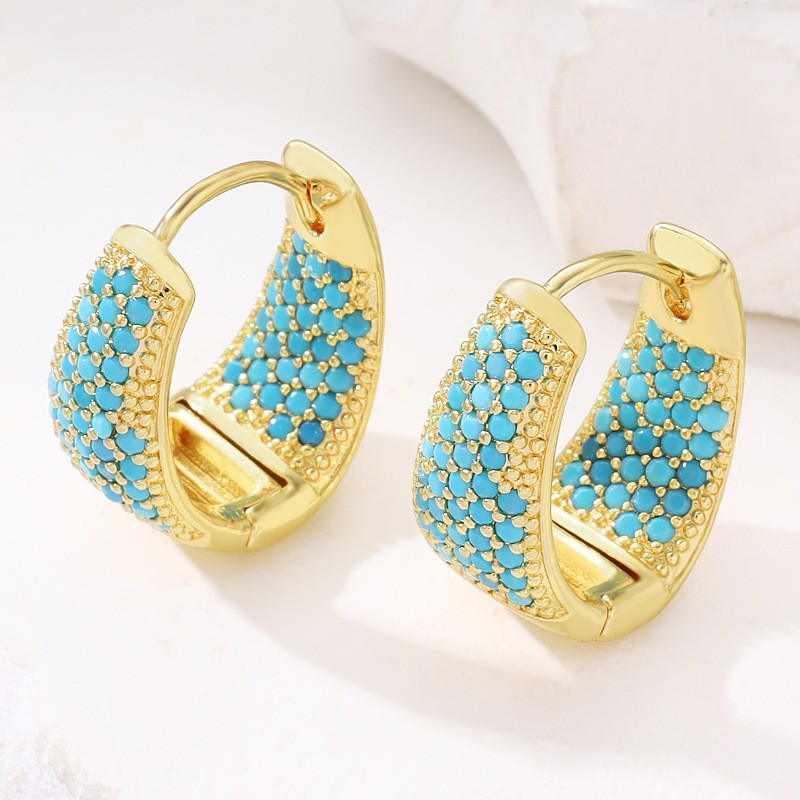 European and American New Style Micro-Inlaid Colorful Zircon Earrings, Women's Earrings, Popular on Xiyin, Trendy Personalized Earrings