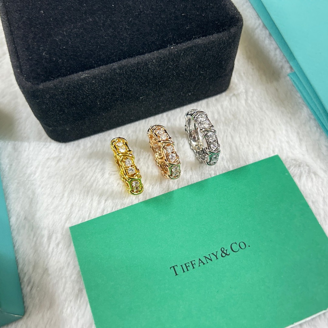Trendy Popular Rings High-End Tiffany-Style Sixteen-Stone Cross Rings Unisex Fashion Rings