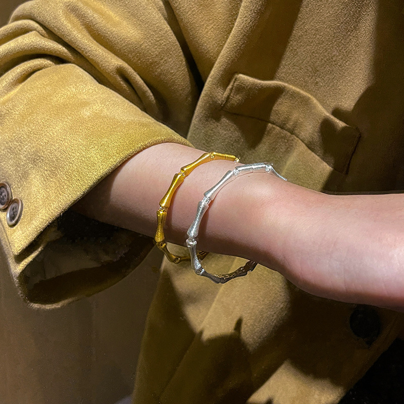 Step by Step Bamboo Bracelet for Women, Ancient Brushed Metal Silver Retro Diamond Bracelet, High-End and Exquisite Hand Jewelry