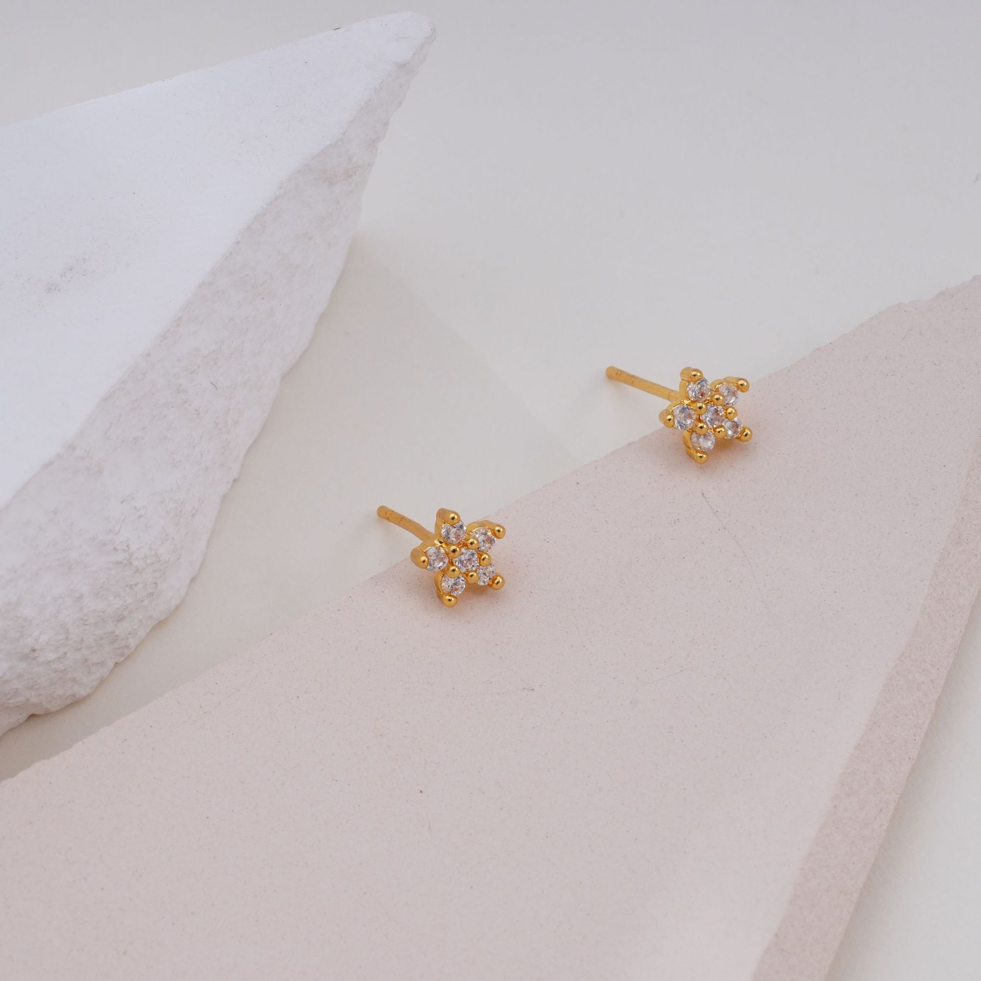 Exquisite and Compact Five-Petal Flower Earrings, Simple, Trendy, Versatile, Copper Micro-Inlaid Earrings, Fashionable Commuter Flower Earrings Wholesale