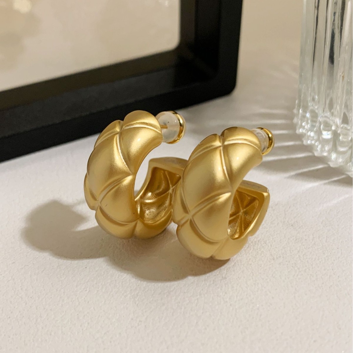 Xiaohongshu's Popular Diamond-Shaped Plaid Earrings, Heavy Metal C-Shaped Diamond-Shaped Earrings, High-End Simple and Exquisite Earrings