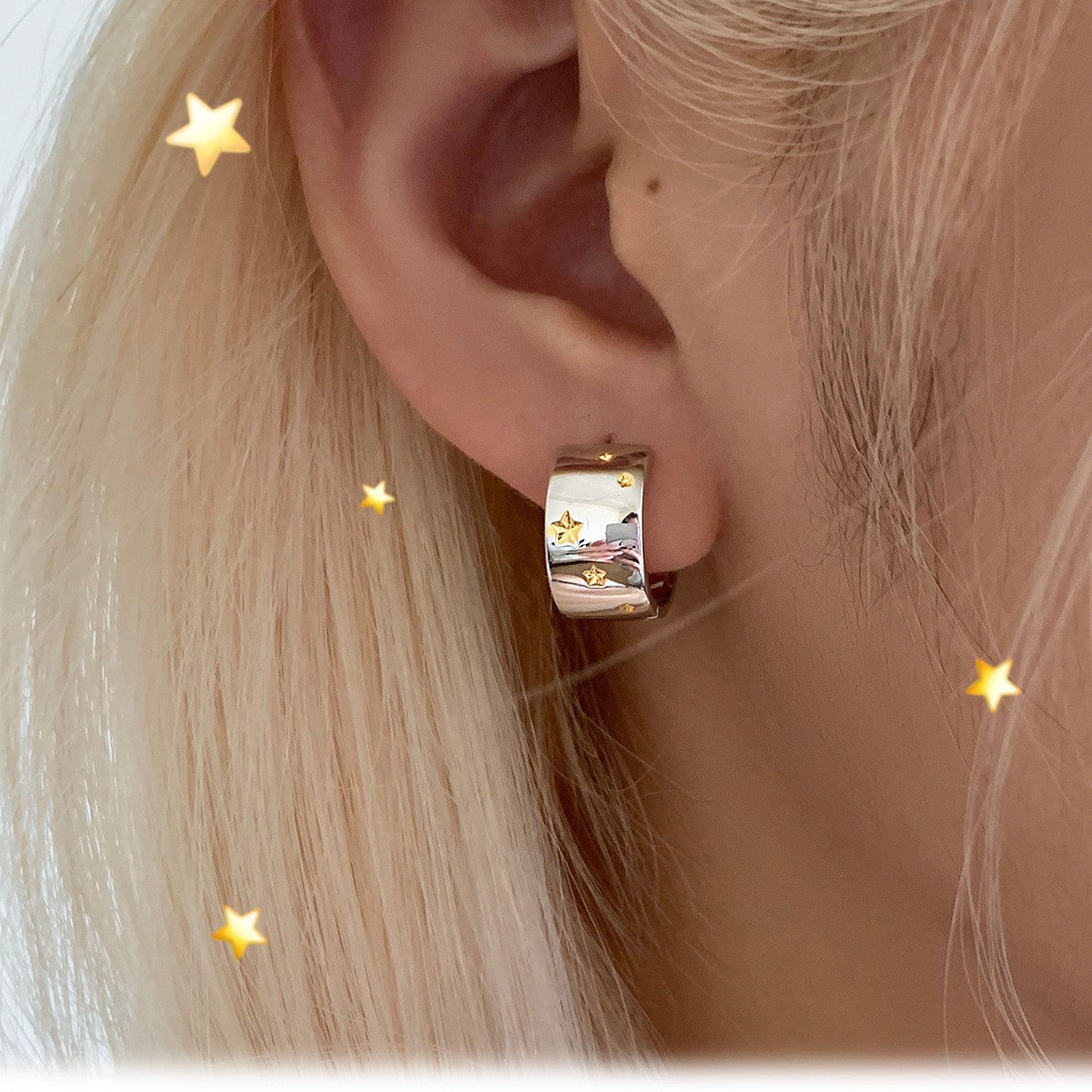 925 Silver Needle Gold and Silver Color-Block Star Earrings for Women, Niche Design, Korean and Japanese Style Wide Hoop Earrings, Light Luxury Earrings