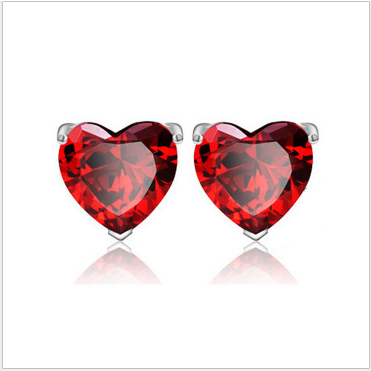 Korean Style Jewelry Heart-Shaped Rhinestone Garnet Earrings Female Celebrity Style Diamond-Encrusted Platinum-Plated Versatile Sweet Earrings Trendy