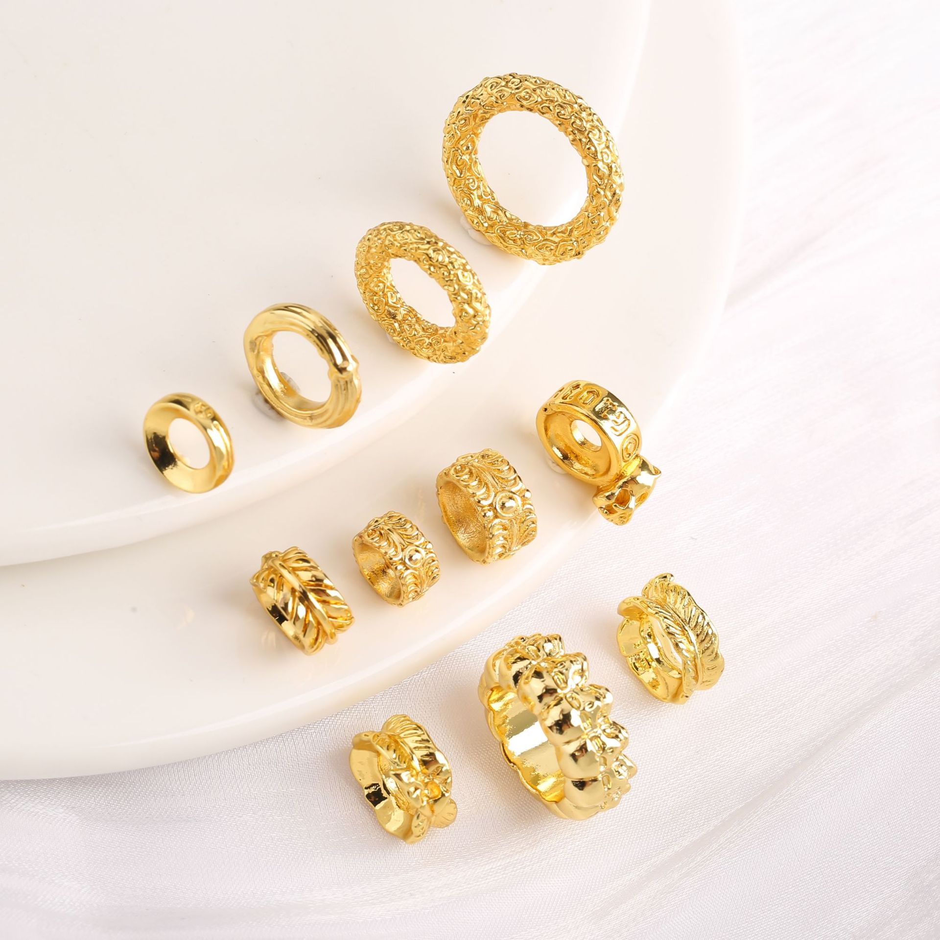 18k Gold Color-preserving Auspicious Cloud Pattern Running Ring Circle Clasp Qiankun Circle Gold Hoop Cultural Toy diy Handmade Jewelry Accessories