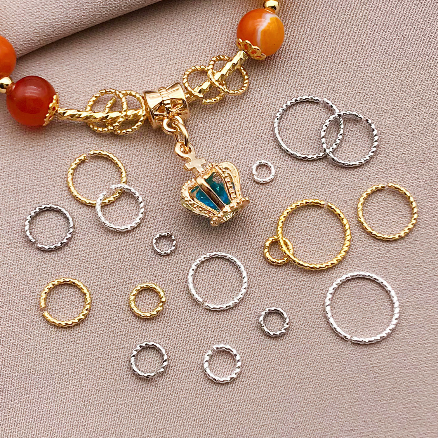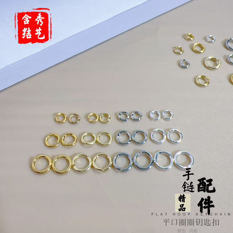 18K Gold-Filled Flat Ring Bracelet Keychain Accessories Ring Single Ring DIY Hand Necklace Beaded Accessories Connecting Ring