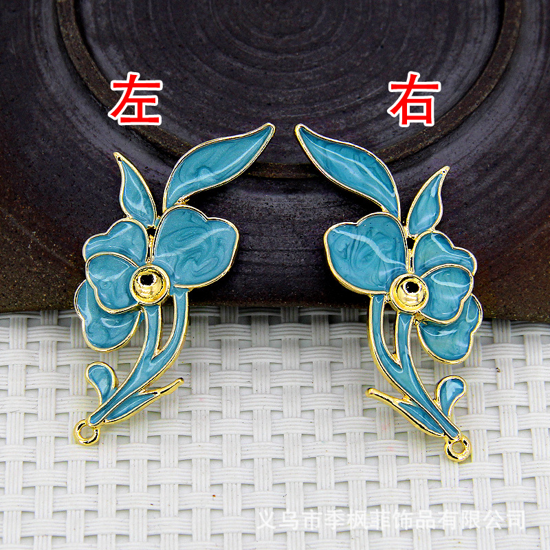 60304 Copper Handmade DIY Leaf Cloisonné Enamel Accessories Hair Accessory Materials 22*53mm Earring Petals