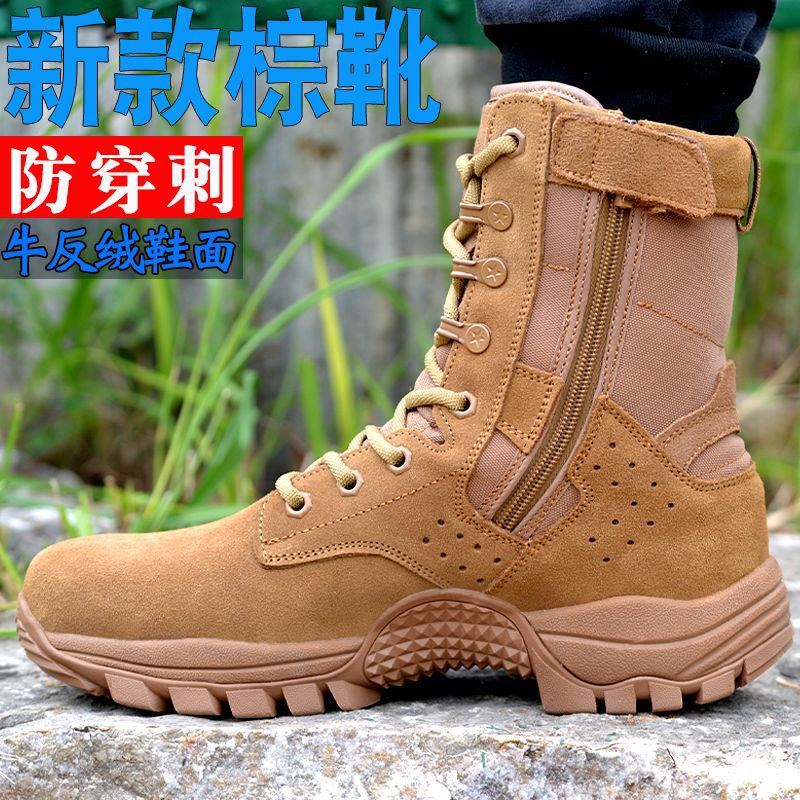 New Zipper Combat Training Boots Ultra-Light Breathable Brown Waterproof Cowhide Outdoor Wear-Resistant Puncture Desert Boots High Top