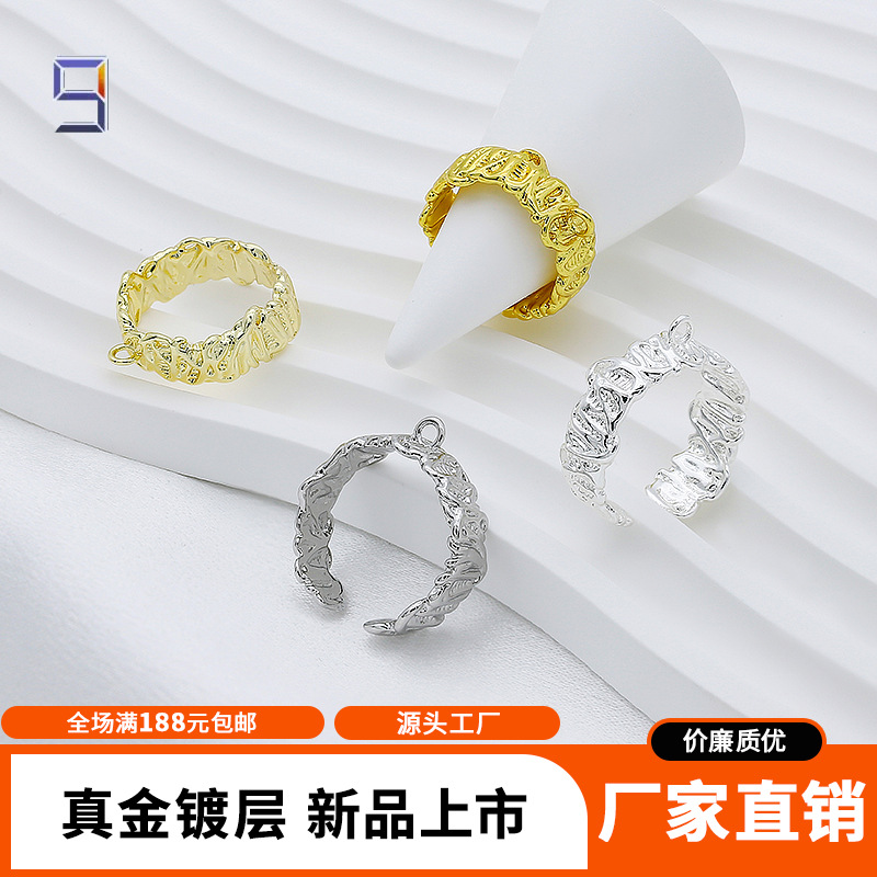 Cross-Border 14K Electroplated Real Gold Color-Preserving Asymmetrical Open Ring DIY Handmade Ring Personalized Fashion Ring Wholesale