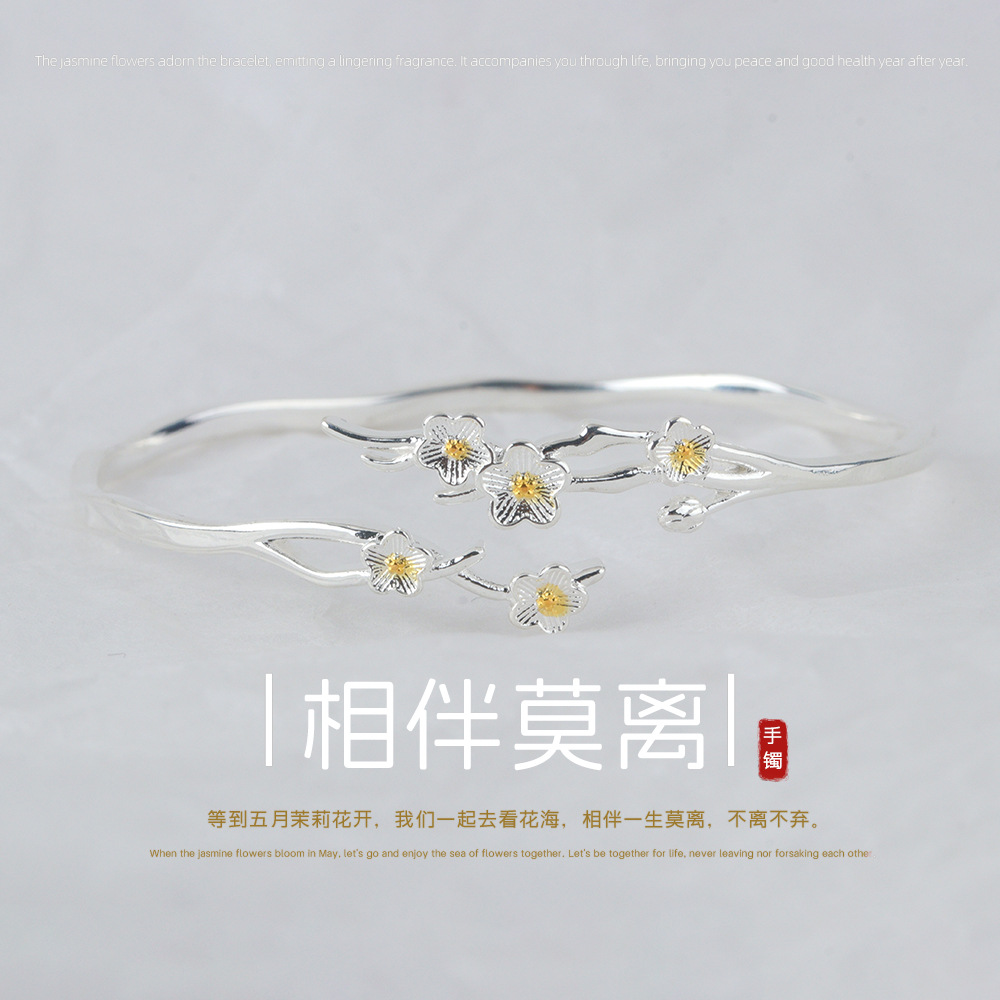 Moli Jasmine Bracelet for Women, Niche Light Luxury Open Bracelet Jewelry, Fashionable and High-End Floral Solid Bangle