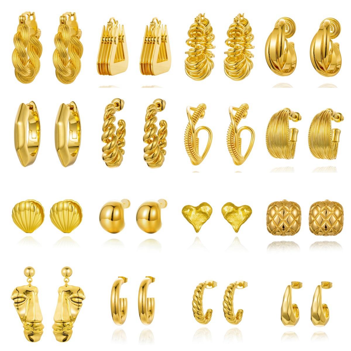 925 silver needle thousand silk care ~ heavy wire drawing metal earrings women's exaggerated fashion atmosphere net red C- shaped ear jewelry