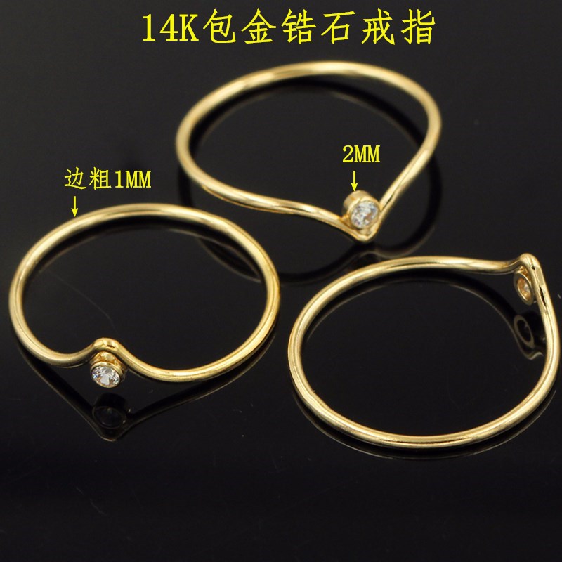 US 14K Gold Gold Injection GF20/1 with Ring Ring Zircon V Ring Finger Ring for Women Simple and Fashionable