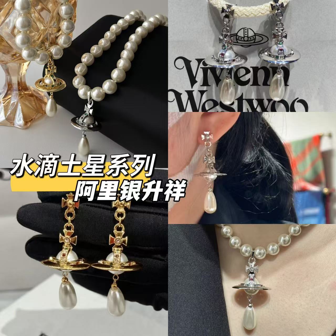 Empress Dowager Gold and Silver Three-dimensional Water Drops Saturn Pearl Earrings Necklace Luxury High-end Banquet Earrings