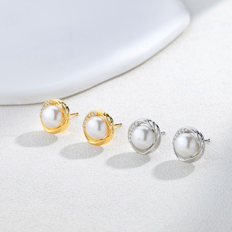 Simple All-match Pearl Earrings Women's 2024 New Niche Design High-end Fashion Elegant Ring Micro-set Earrings