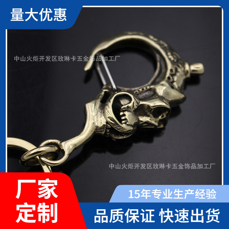 Brass eight-character beard skull tactical car keychain pendant lovers buckle hook belt buckle wholesale