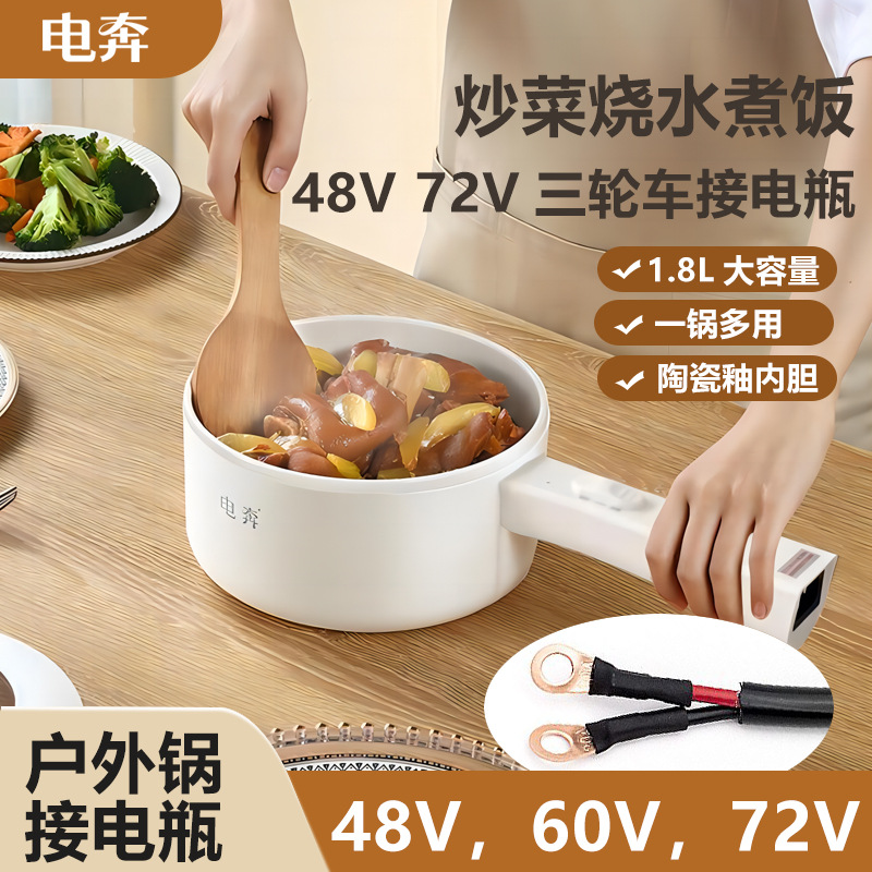 Electric 60V Solar Panel-Powered Cooking Pot for Street Vendors, Non-Stick, 36V Battery, 2.4kg Three-Wheeled Vehicle-Mounted Electric Frying Pan