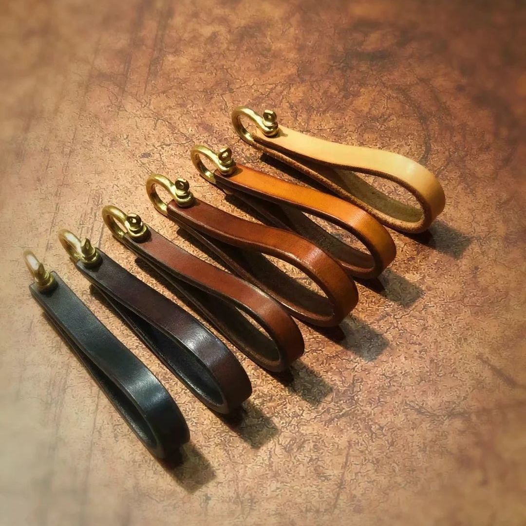 Purely Handmade Japanese Oak Wood First-Layer Cowhide Horseshoe Buckle Pure Brass Keychain Retro Car Pendant Simple