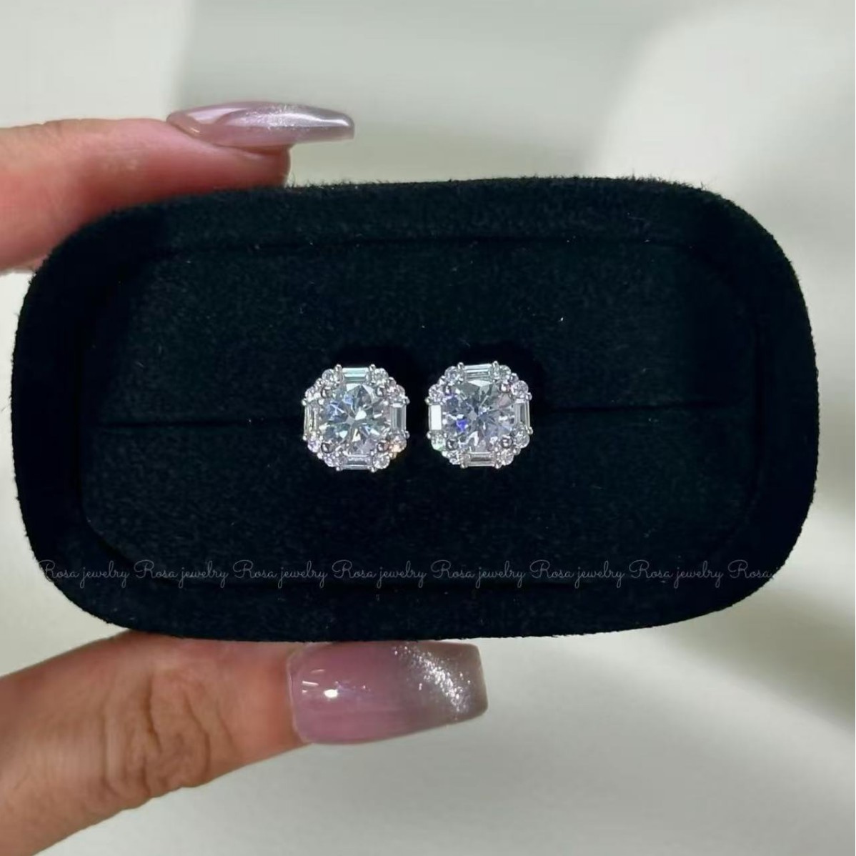 European and American Fashion Light Luxury Zircon Shiny Geometric Stud Earrings for Women, Trendy Light Luxury Banquet Engagement Earrings, Popular European and American Style