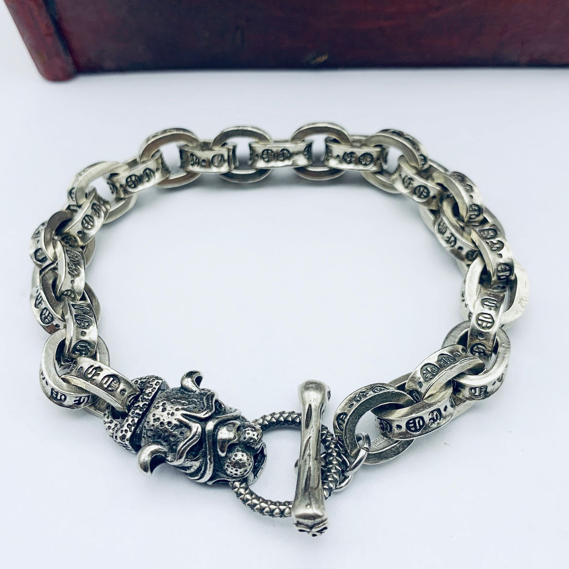 White Copper Jewelry Six-character Truth White Copper Miao Silver Bracelet Garber Element Bulldog Bracelet Dog Zodiac Bracelet Gifts