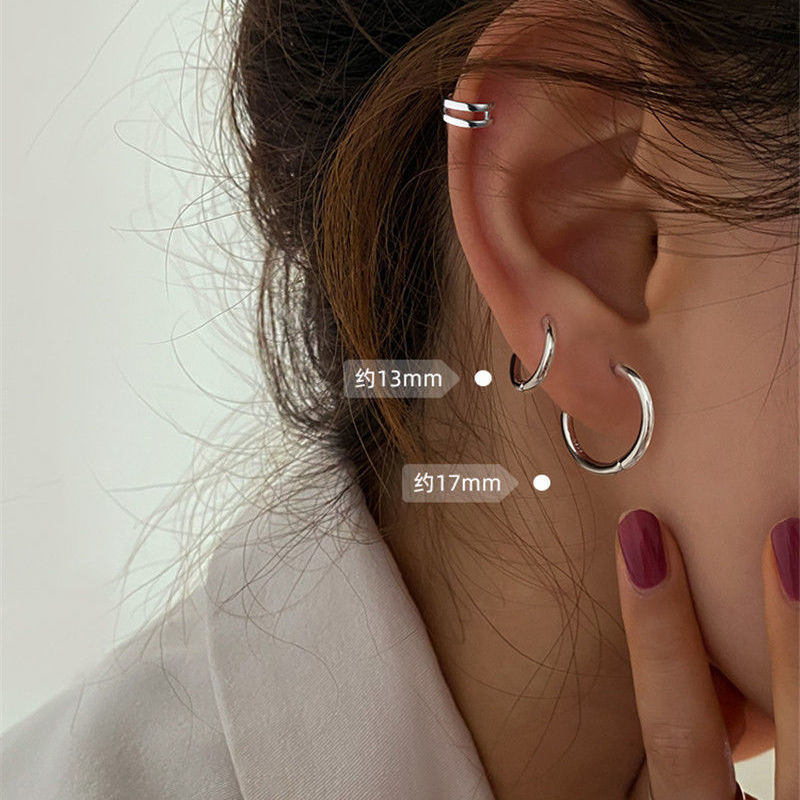 S925 silver needle circle earrings women's simple small ring plain circle earrings niche design ins style earrings