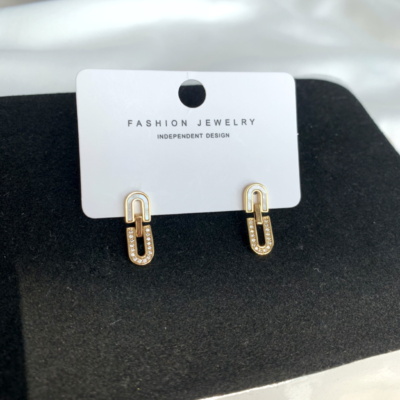 S925 silver needle natural fritillary U-shaped earrings South Korea elegant daily earrings female flash diamond earrings Qingdao Tiya