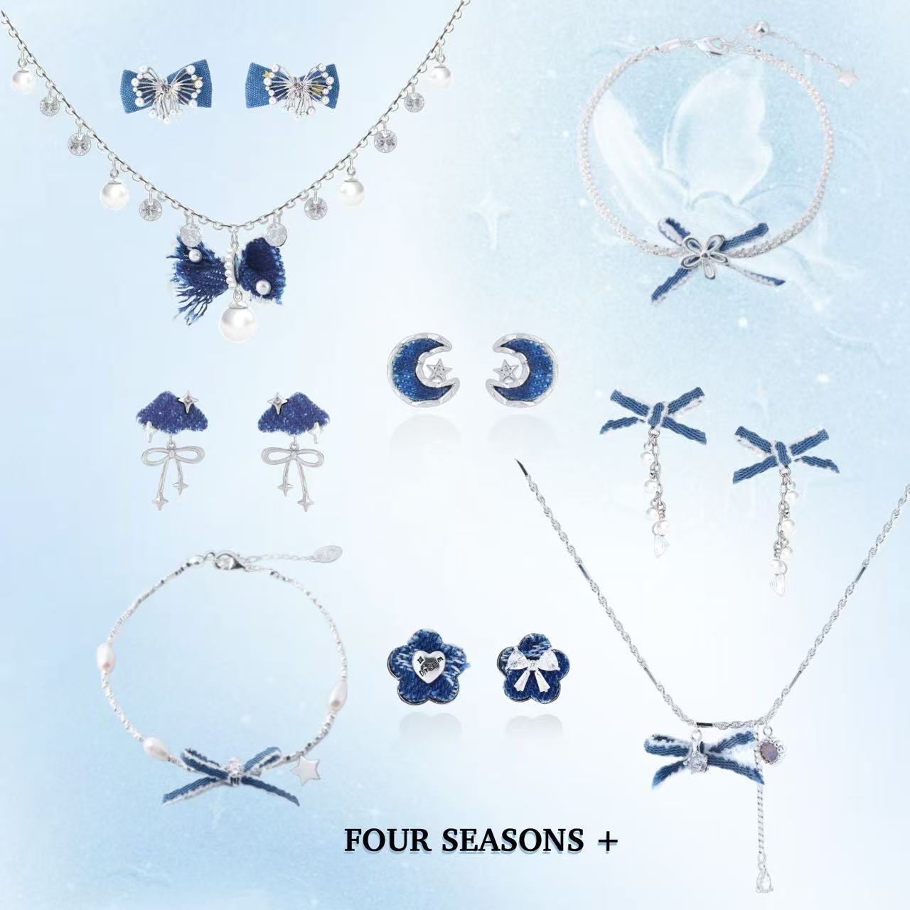 Autumn and Winter Accessories Denim Bow Earrings Star Moon Earrings Fashionable Exquisite High-End Earrings Versatile Necklace