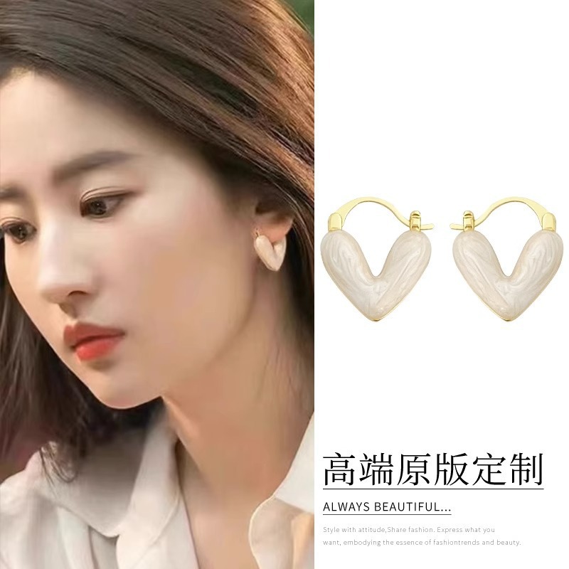 New Oil-Dropping Love Earrings, Light Luxury French Heart-Shaped Temperament Earrings, Niche Design, Versatile Earrings