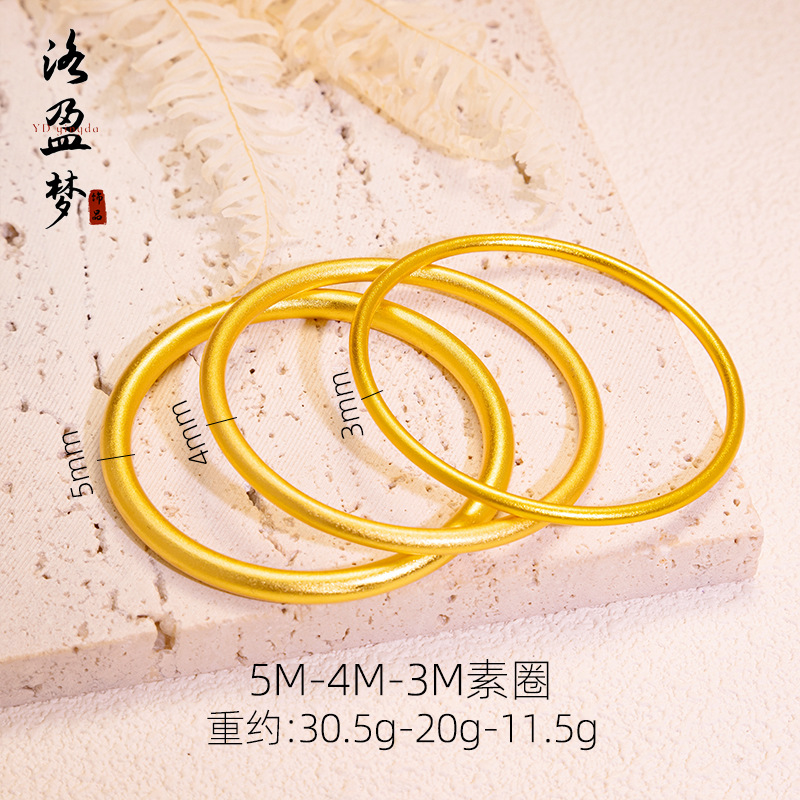 Gold Store Same Style Plain Ring Bracelet, Real Gold-Plated Women's Light Luxury Simple Bracelet, Sand Gold Bracelet with Uniform Color Inside and Out, Copper Gold-Plated