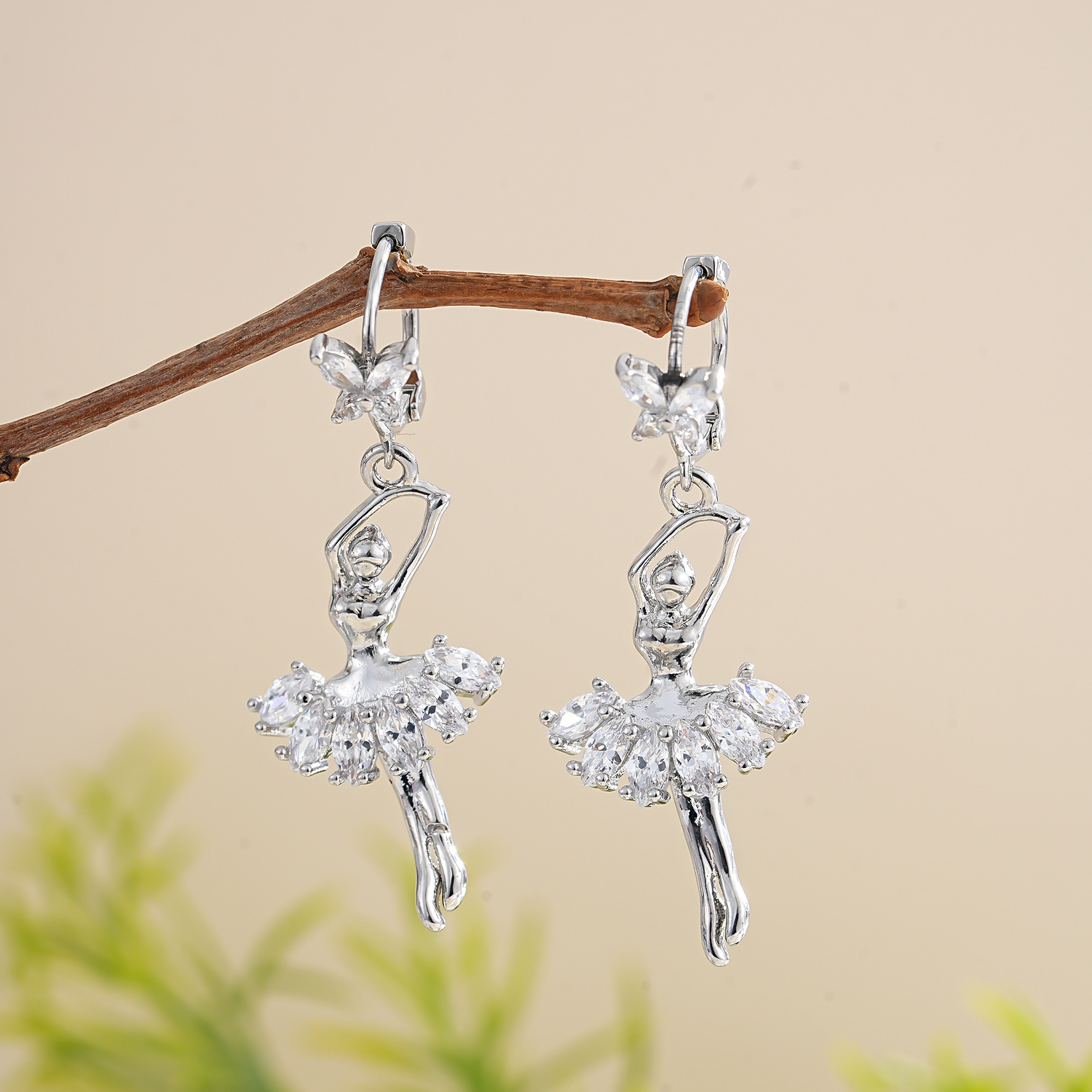 Copper Inlaid Zirconium Butterfly Ballet Girl Earrings Fashion Personalized Crystal Pendant European and American Style Cross-Border Jewelry Earrings