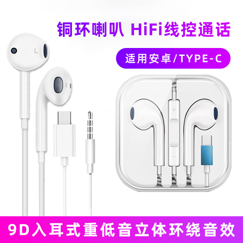 Suitable for Apple Huawei type-c Android Round Hole Flat Head Bluetooth In-Ear Wired Headset Call Live Wire Control