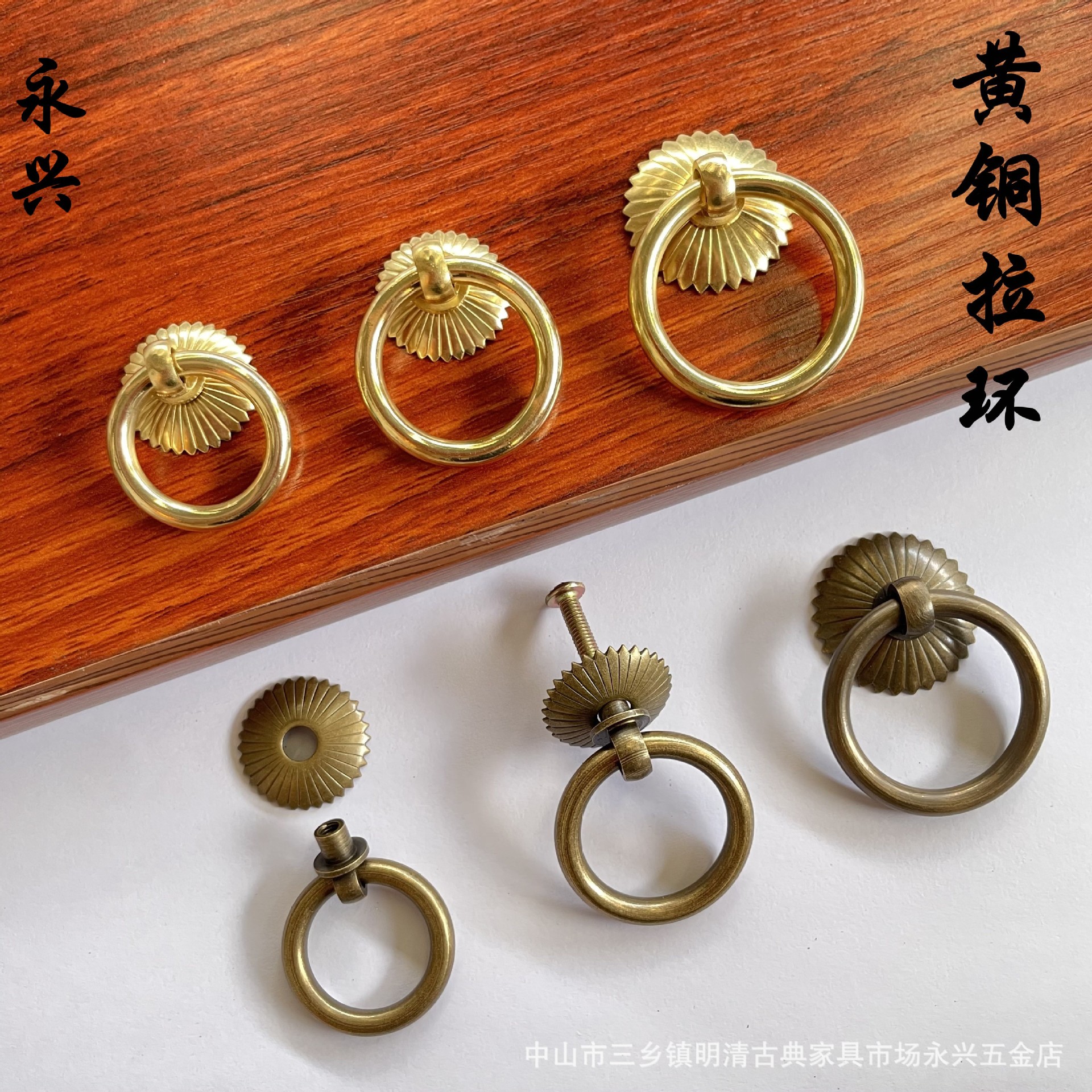 Chinese Medicine Cabinet Ring Tea Can Pull Ring Hardware Wardrobe Door Single Hole Handle Antique Furniture Drawer Brass Handle