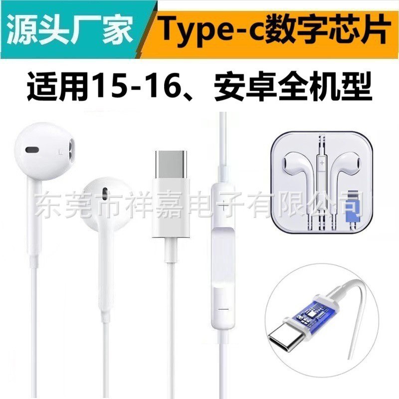 Typec Digital Headphones Are Suitable for Huawei Apple 15-16 Wired Headphones with Flat Head Suitable for Honor Headphones
