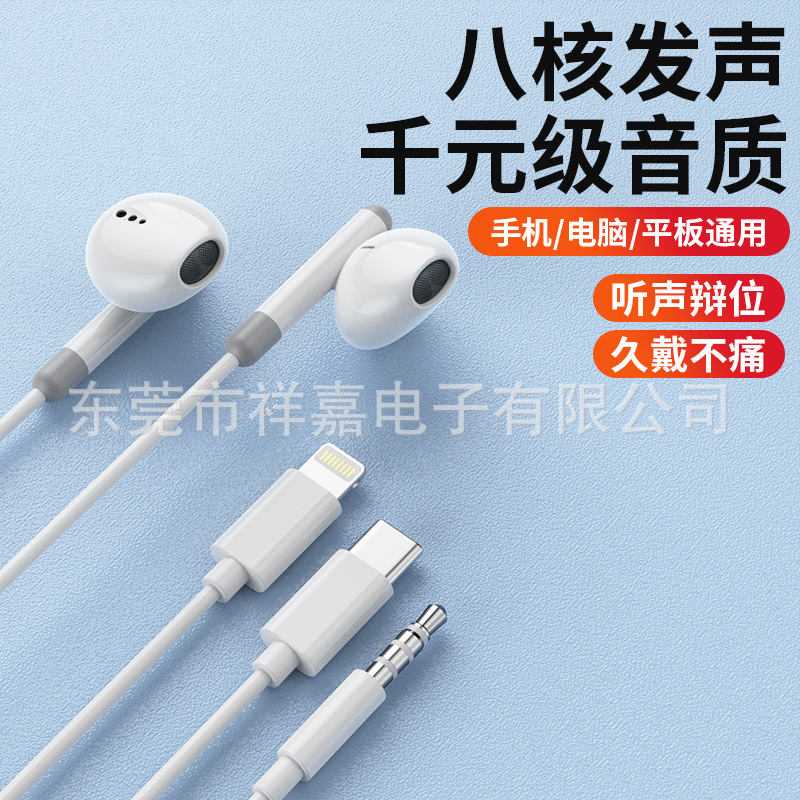 The Fourth Generation Type-C Flat-Port Digital Wired Headphones Are Suitable for Apple, Oppo, Huawei, and Vivo Mobile Phones In-Ear Headphones
