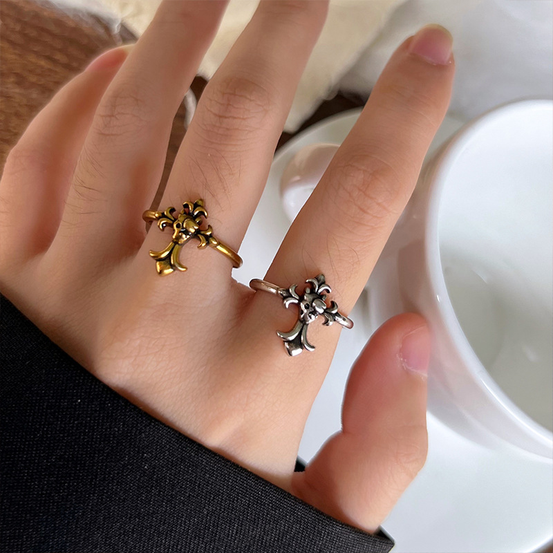Retro Vintage Skull Cross Antique Gold Ring Non-Fading Niche Simple 925 Silver Ring Wholesale