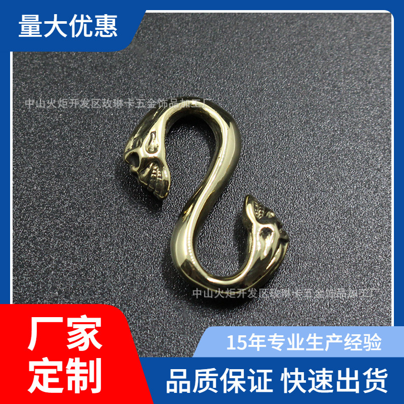 Brass Double Head Skull S-Hook Connection Hook Live Broadcast Internet Popular Leather Luggage Accessories Connection Ring Financial Key Chain Accessories