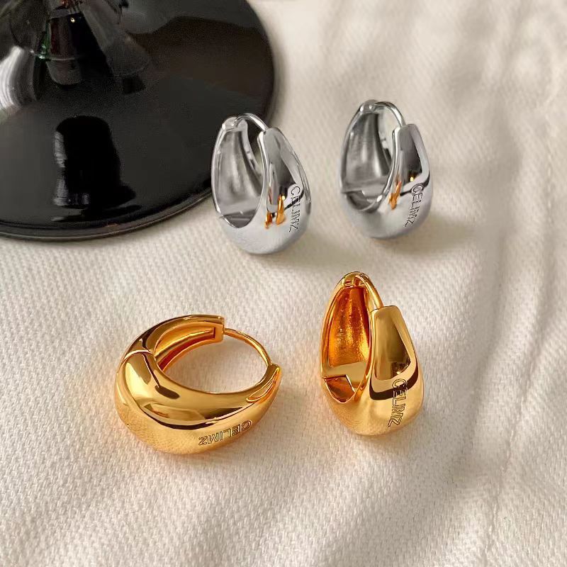 European and American Metal Water Drop Circle Earrings for Women, High-End, Accessible Luxury, Atmospheric Earrings, Retro Elegant, Real Gold Electroplated Earrings