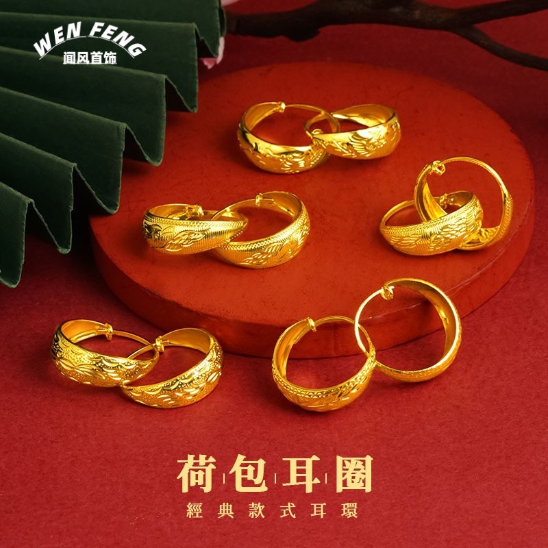 Brass Gold-Plated Classic Purse Dragon and Phoenix Earrings for Women Pisces Pattern Women Vacuum Earrings Ethnic Style Earrings Wholesale