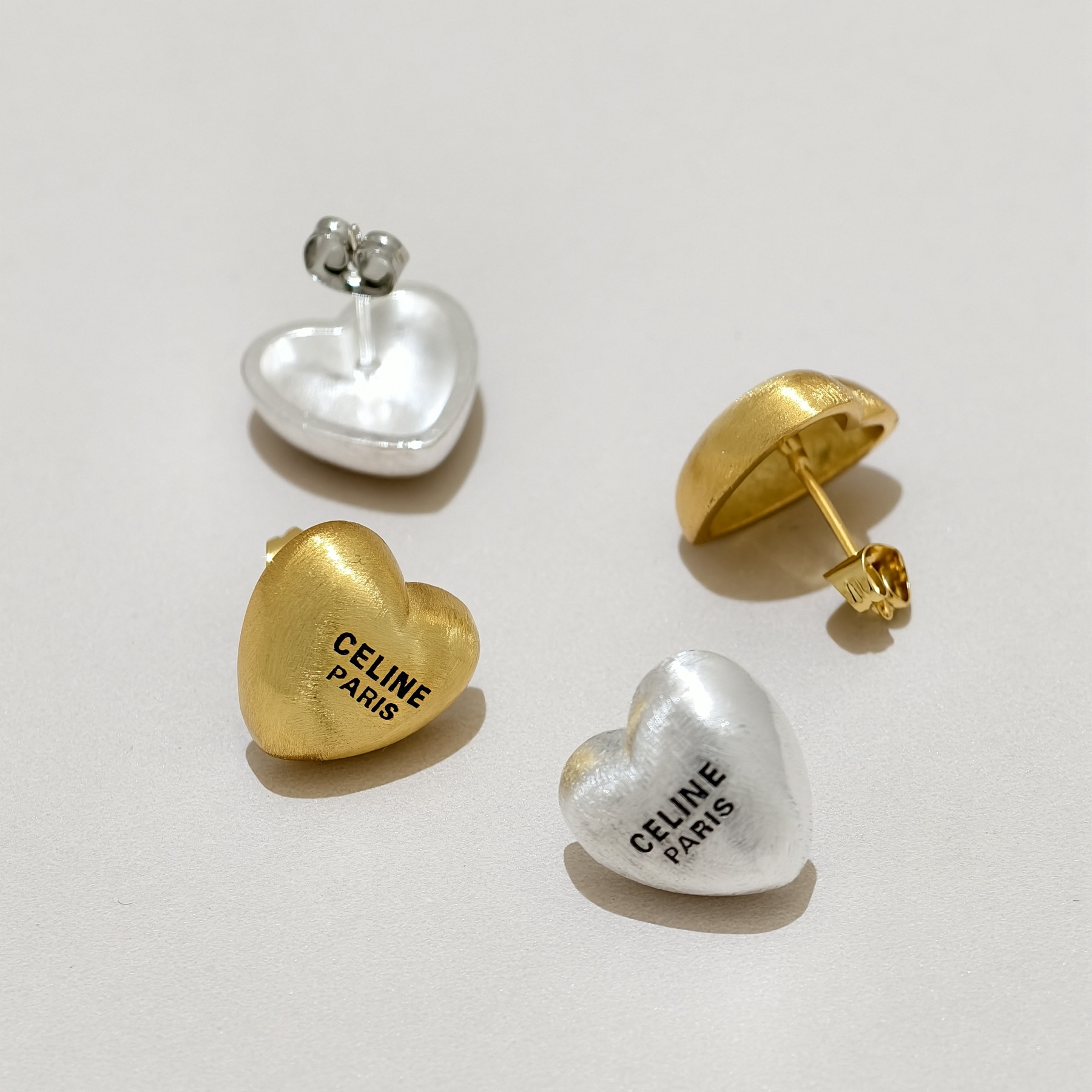 2025 Arc De Triomphe New Cool Heart Brushed Earrings Women's High-End Accessible Luxury Niche Heart-Shaped Earrings