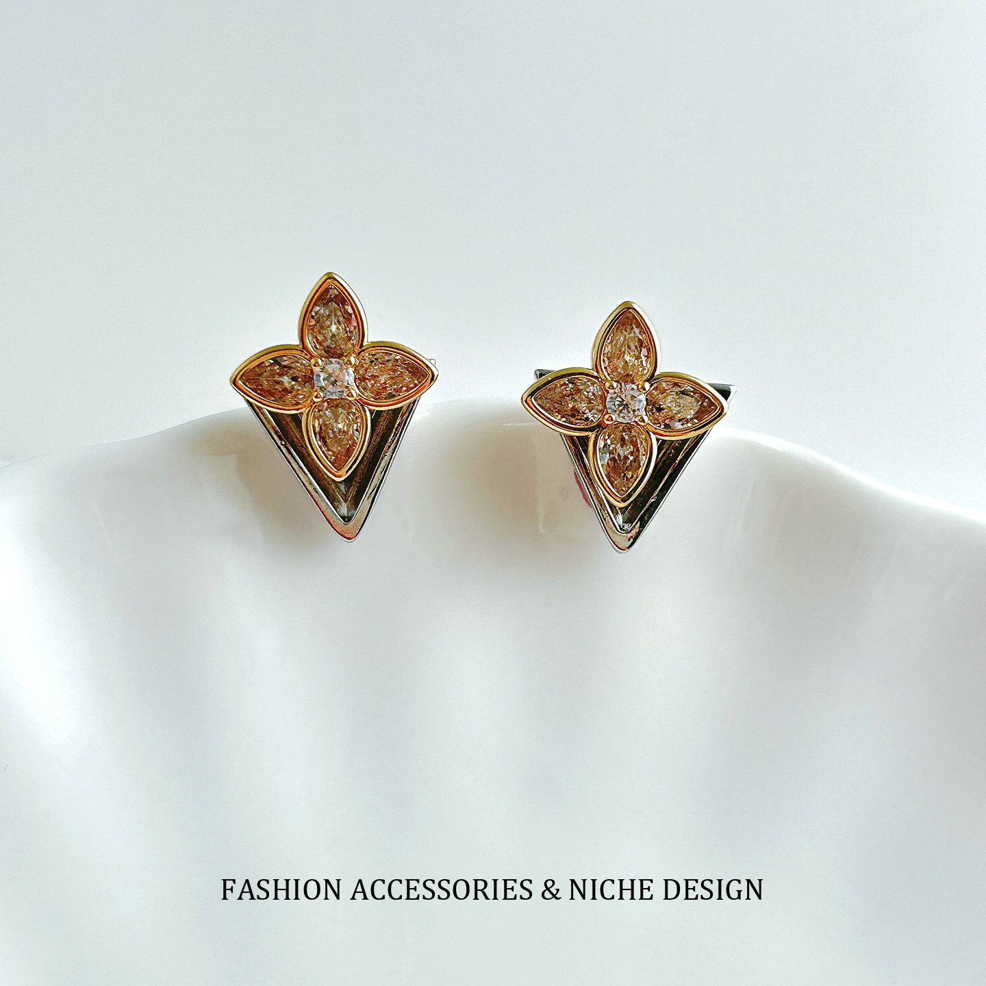 European and American Minimalist Style Four-Leaf Clover Zircon Stud Earrings with a High-End Luxury Feel, Vintage Unique Front and Back Layered Earrings