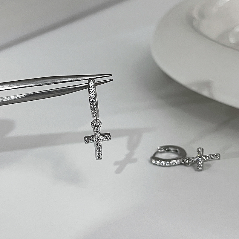 Super Shiny Diamond Cross Earrings with Small Earlobe Delicate Hoops, Japanese and Korean Niche Sparkling Diamond Unisex Ear Cuffs