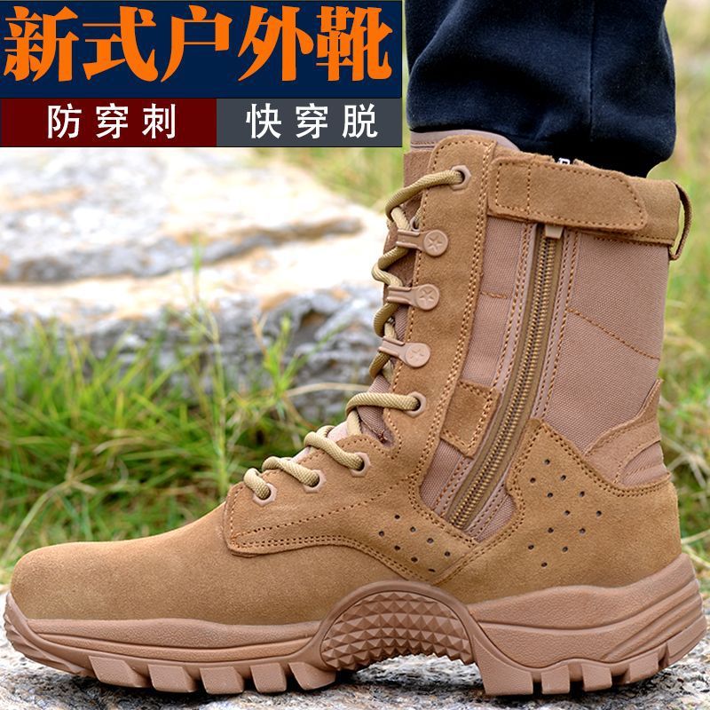 New High-Top Brown Combat Training Boots for Men, Ultra-Light Summer Mesh Training Boots, Genuine Leather Wear-Resistant Tactical Boots, Outdoor Boots