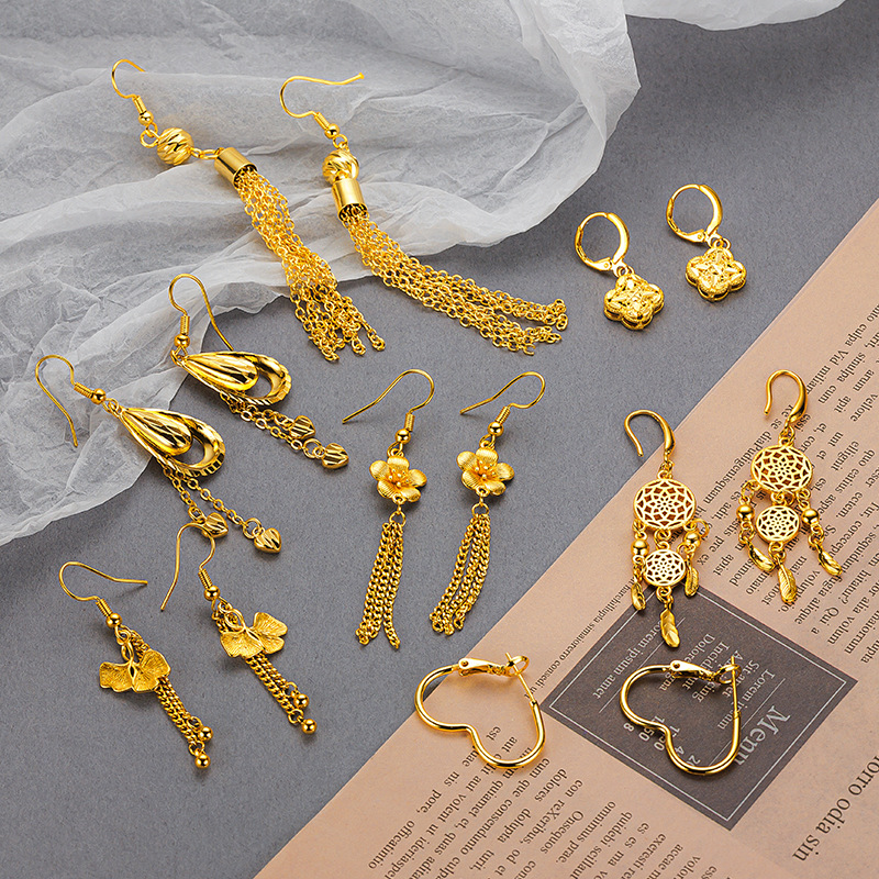Hollow women's water drop earrings Vietnam sand gold women's fashion sand gold jewelry wholesale cross-border earrings water drop earrings