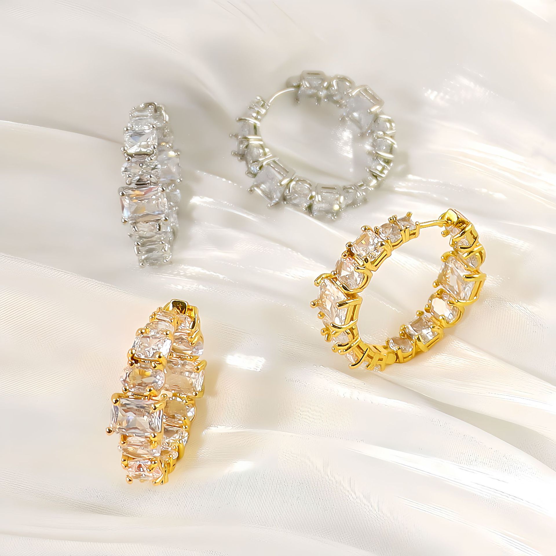 Cross-Border European and American High-End Copper Gold-Plated Handmade Inlaid Full Zircon Earrings, Versatile and High-End Full Diamond Women's Earrings