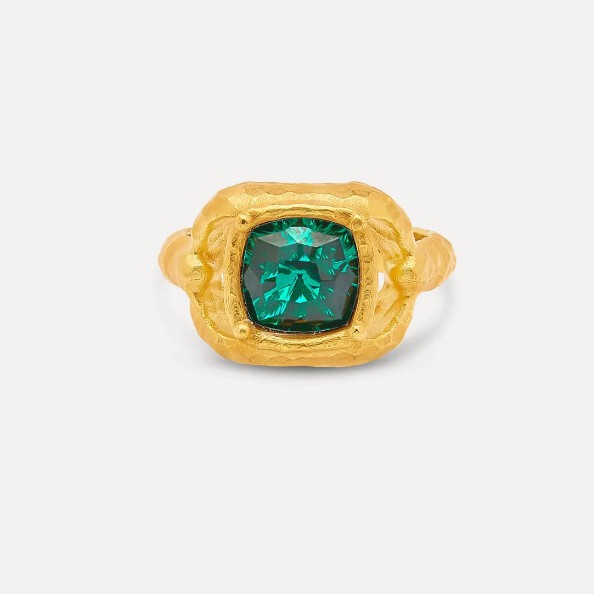 Oscar Retro Embossed Texture Shiny Multi-Faceted Inlaid Stained Glass Ring Women's Large Set
